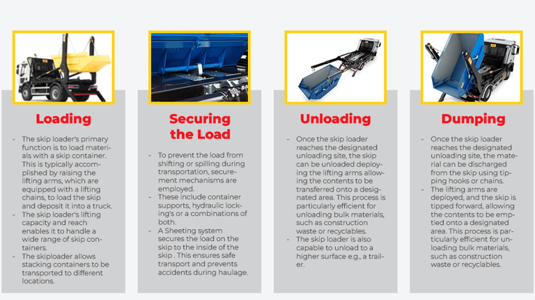 A skip loader is a versatile piece of equipment that plays a crucial role in various industries, particularly construction, waste management, and recycling. It comprises a system designed to seamlessly load, secure, unload, or dump materials efficiently.