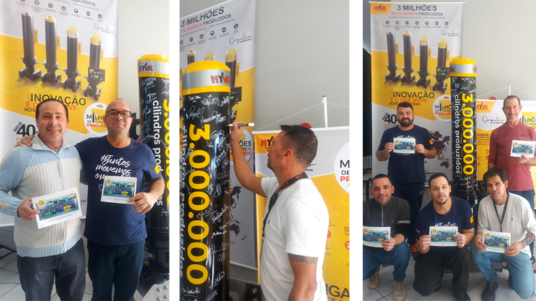 A Hyva, líder global em soluções hidráulicas inovadoras, anuncia a produção de seu cilindro de número três milhões neste mês de maio de 2023. Este marco de produção está sendo comemorado em todas as unidades Hyva pelo mundo. Na fábrica da Hyva do Brasil o evento ocorreu no dia 15/05, onde todos os funcionários puderam participar e assinar seus nomes no cilindro que foi criado para o novo semirreboque com 4º eixo, última novidade no mercado.