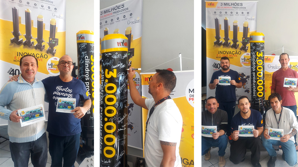 A Hyva, líder global em soluções hidráulicas inovadoras, anuncia a produção de seu cilindro de número três milhões neste mês de maio de 2023. Este marco de produção está sendo comemorado em todas as unidades Hyva pelo mundo. Na fábrica da Hyva do Brasil o evento ocorreu no dia 15/05, onde todos os funcionários puderam participar e assinar seus nomes no cilindro que foi criado para o novo semirreboque com 4º eixo, última novidade no mercado.